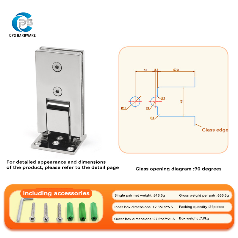 Flat glass hinges, best-selling hinges in Russia, 90° inward opening hinges C-090