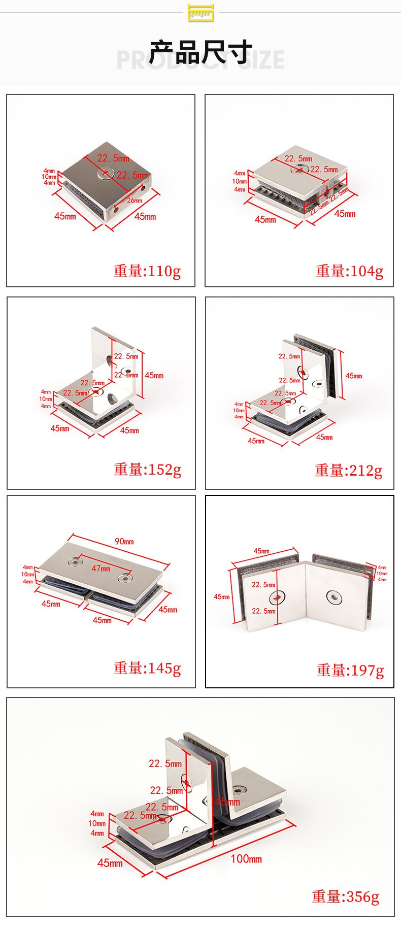 135° glass-to-glass standard glass clamp, glass fixing clamp (single-sided/double-sided) C-084