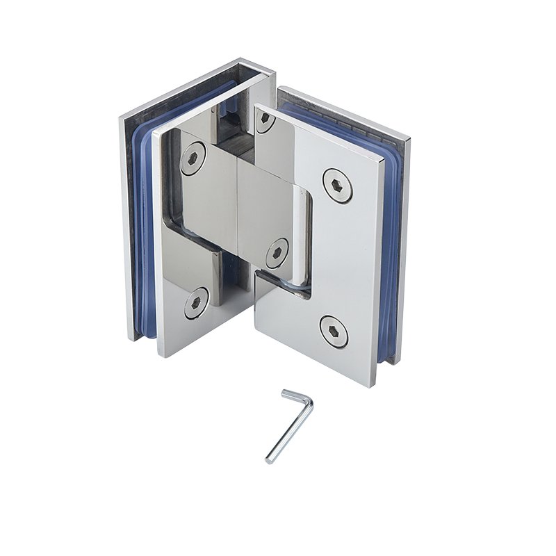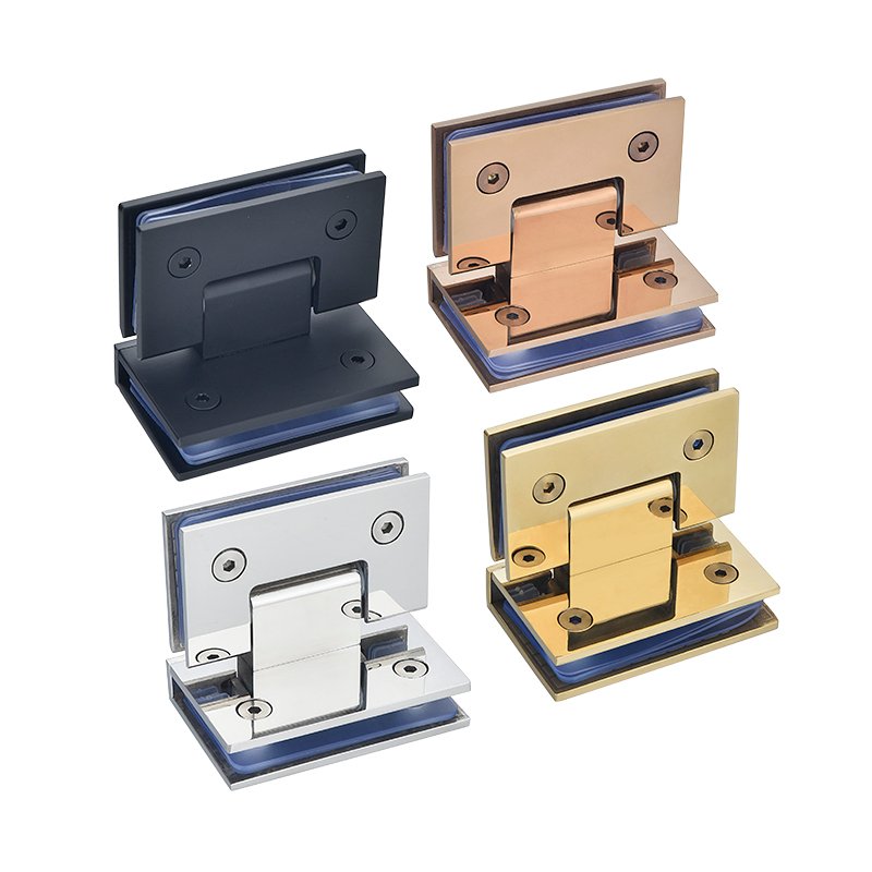 This 90-degree double-leaf glass hinge is available in 304 stainless steel, 201 stainless steel, copper, or zinc alloy. It is precision-cast from stainless steel, with a thickness of 5mm. It can also be welded, with thicknesses of 4mm or 5mm. Each hinge is individually packaged and includes screws. It is spring-loaded and automatically closes when the door is closed to a 25° angle.