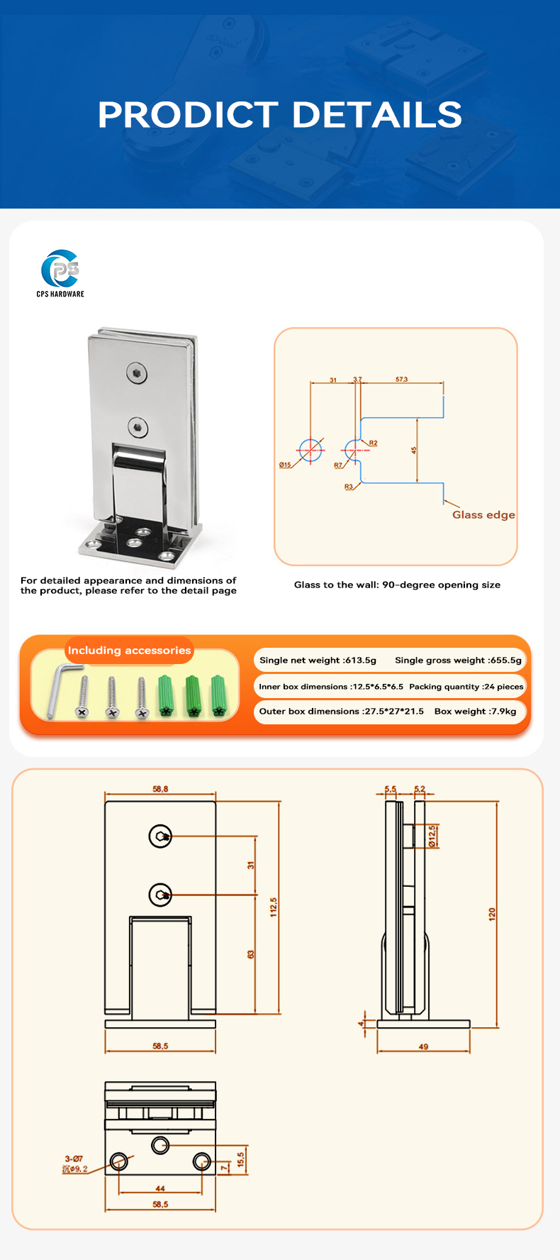 Heavy duty glass door hinges, extended 90 degree wall to glass offset hinges, frameless door glass clamp hinges