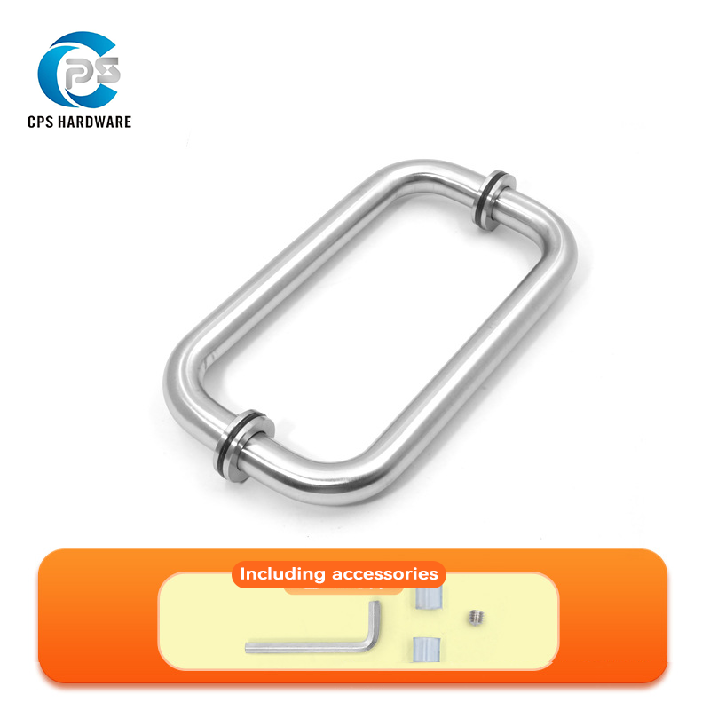 304/201 stainless steel Back-to Back Pull Handles fits heavy glass shower doors from 1/4″ glass thickness Glass Door Hole