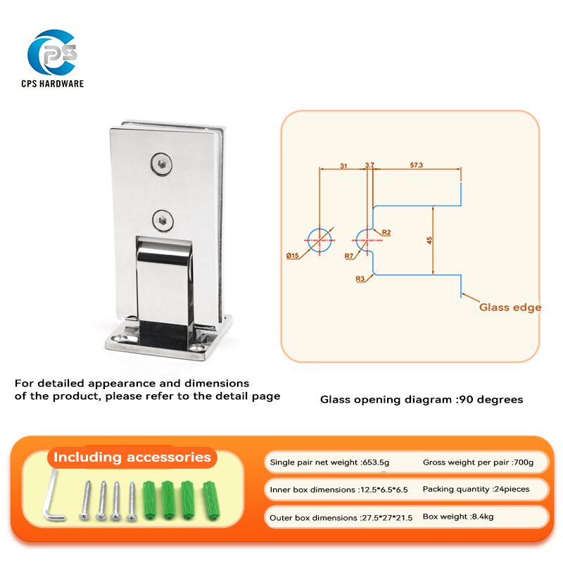 Flat glass hinges, best-selling hinges in Russia, 90° inward opening hinges C-090