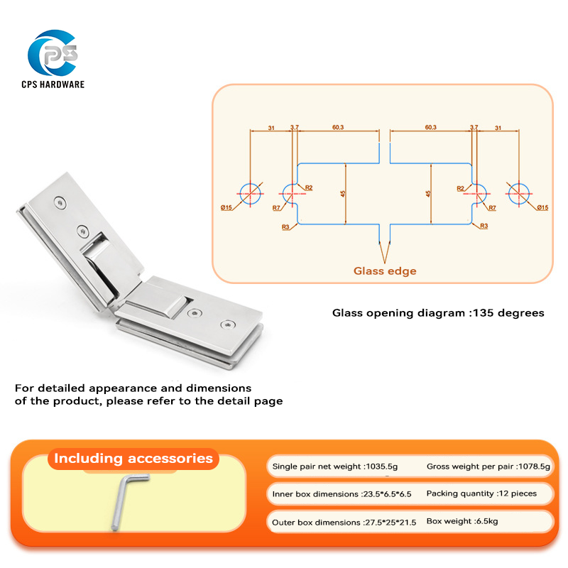 135° glass-to-glass standard glass clamp, glass fixing clamp (single-sided/double-sided) C-084